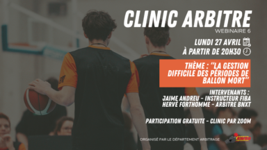 4Mar Clinic arbitre – Webinaire 6 Evénement Evénements AWBB News News Arbitrage Inscription au sixième Webinaire réalisé par le Dpt Arbitrage Awbb. Le lundi 27 avril 2026 à 20.30 en ZOOM. Intervenant : [...]